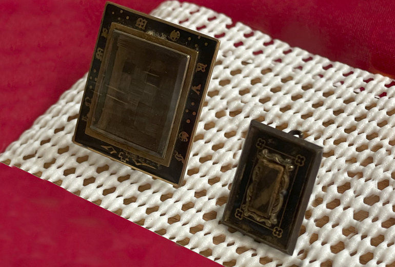 Life was full of hardships, but none were as difficult as the tragic loss of her children. Of the couple’s 12 children, only six survived past age 10—a source of heartbreak for Elizabeth. The tragedy of losing so many children left a mark on Elizabeth. She often wore mourning brooches that contained the woven hair of her deceased children. The large brooch contains the hair of Joseph, Georgiana, Anna Maria and Lucy, who died of diptheria in 1937 and 1938. The small brooch holds the hair of George Washington Henderson Jr. who died of typhoid fever in 1863.
