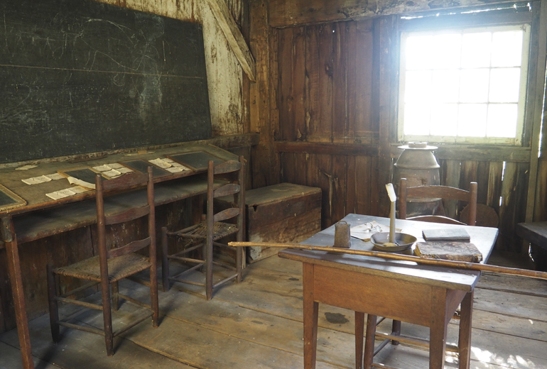 The first schoolhouse in Wood County can still be seen at the Henderson Hall Historic District. Elizabeth believed in education. As a highly intellectual person, she wanted her children and her grandchildren to benefit from a good education. Since there was no public school system in the area, she had a schoolhouse built behind Henderson Hall in 1836. The schoolhouse was the first in Wood County, and possibly the first in the state. Tutors were hired to teach the children, and often lived at the Hall with the family. One such tutor who was hired was Anna Rosalie McIntosh who later married Jock Bedell Henderson. Today, vistors of Henderson Hall can see books, desks, seats, a blackboard and chalk slates still in tact in the schoolhouse as they were used in the 1800s.
