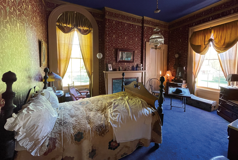 Jock Bedell and Anna Rosalie’s wedding portrait. Visitors to Henderson Hall can see their wedding clothes on display in the third floor clothing exhibition area. Jock Bedell’s bedroom in Henderson Hall has been preserved right down to his sleeping gown on the bed.