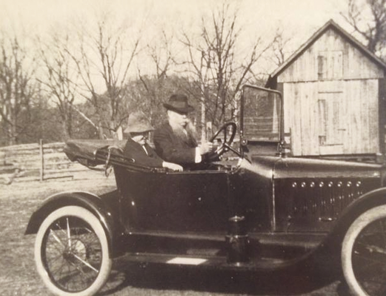 Jock Bedell and Anna Rosalie taking a drive in their automobile